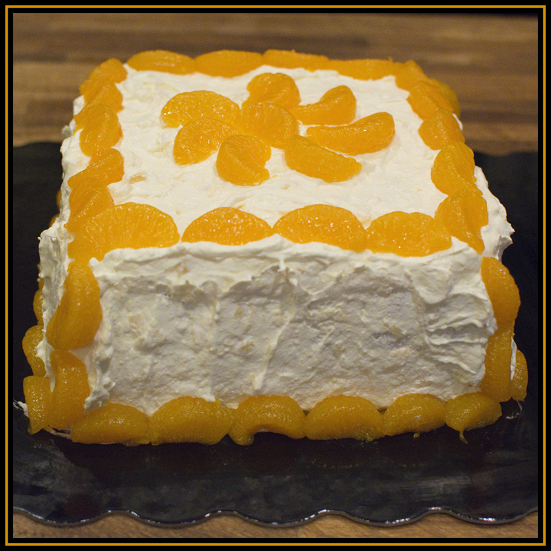 - Use the Cool Whip/pineapple mix to completely ice the cake.